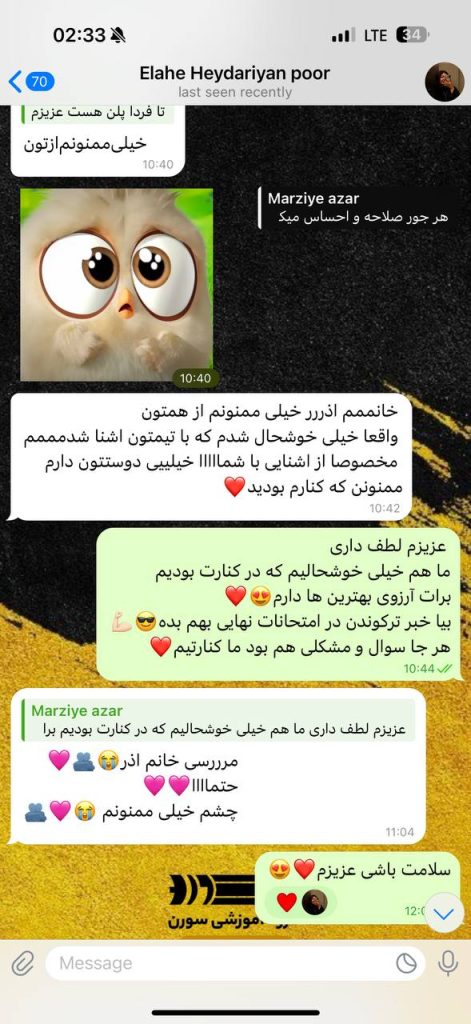 انقد تو این چند ماه اخیر حس خوبی داشتم دوست دارم ارتباطم بعد از کنکور هم با تیم سورن ادامه دار باشه…